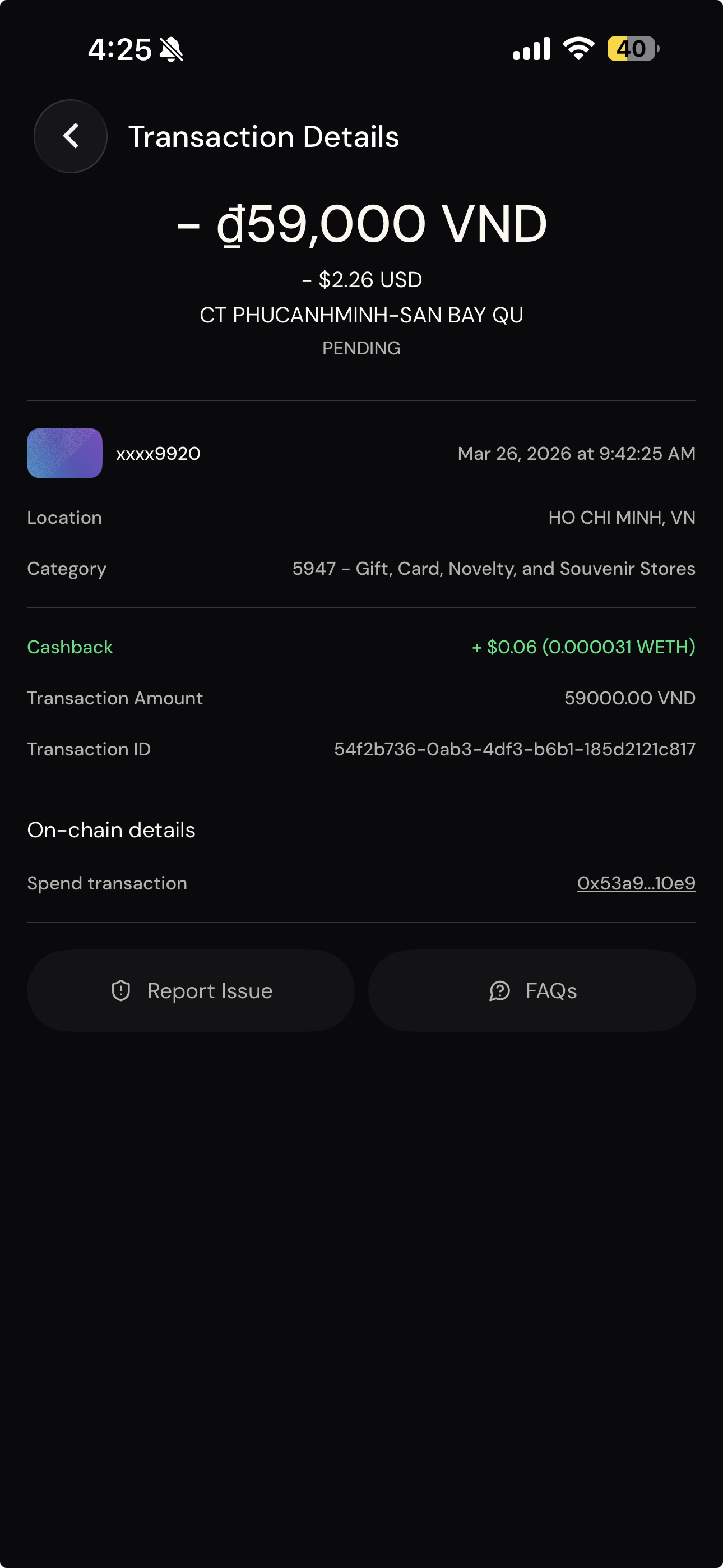 I ran the same transaction through Ready and EtherFi at a coffee shop in HCMC airport, while waiting for a friend. Same ₫59,000. Different cards.